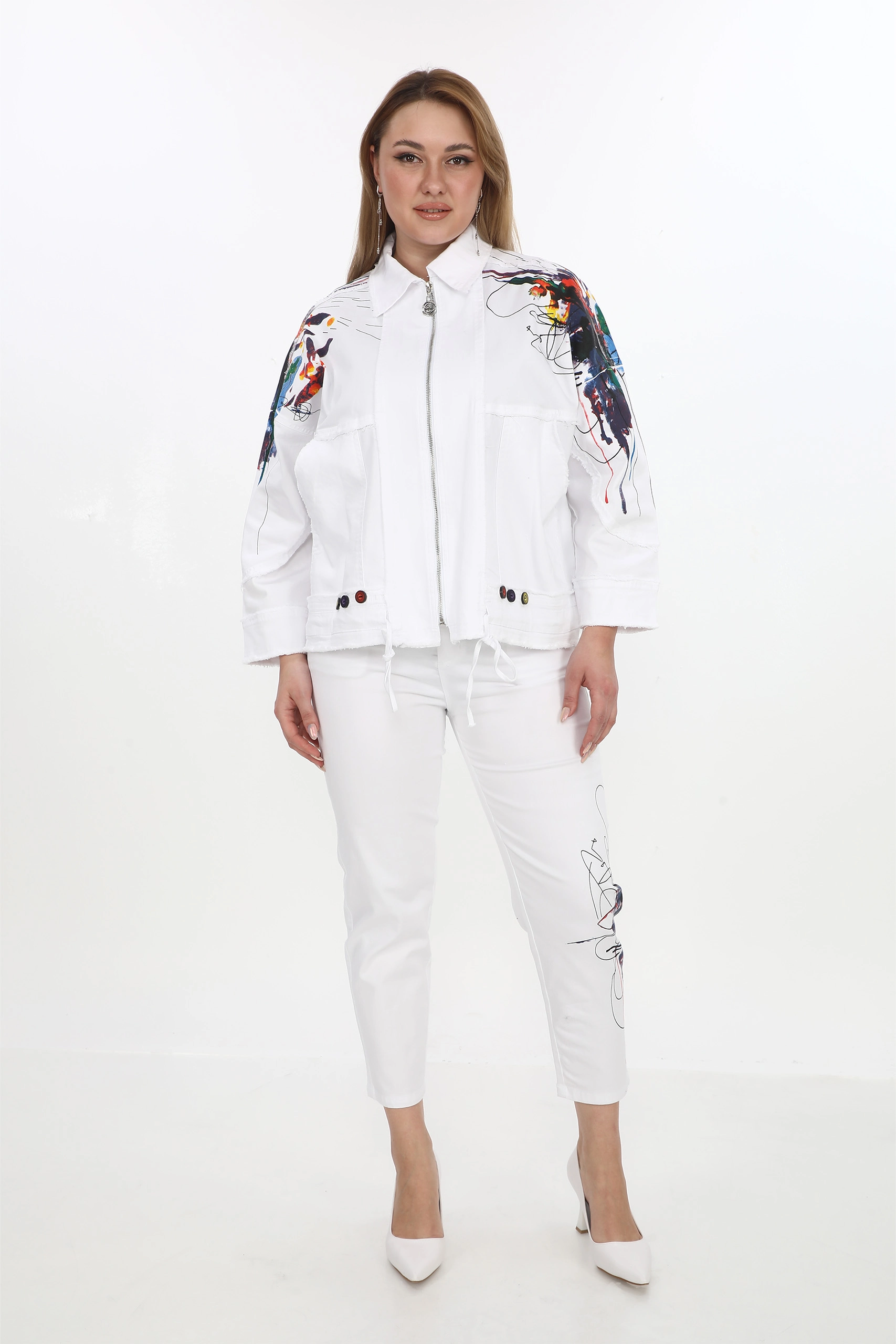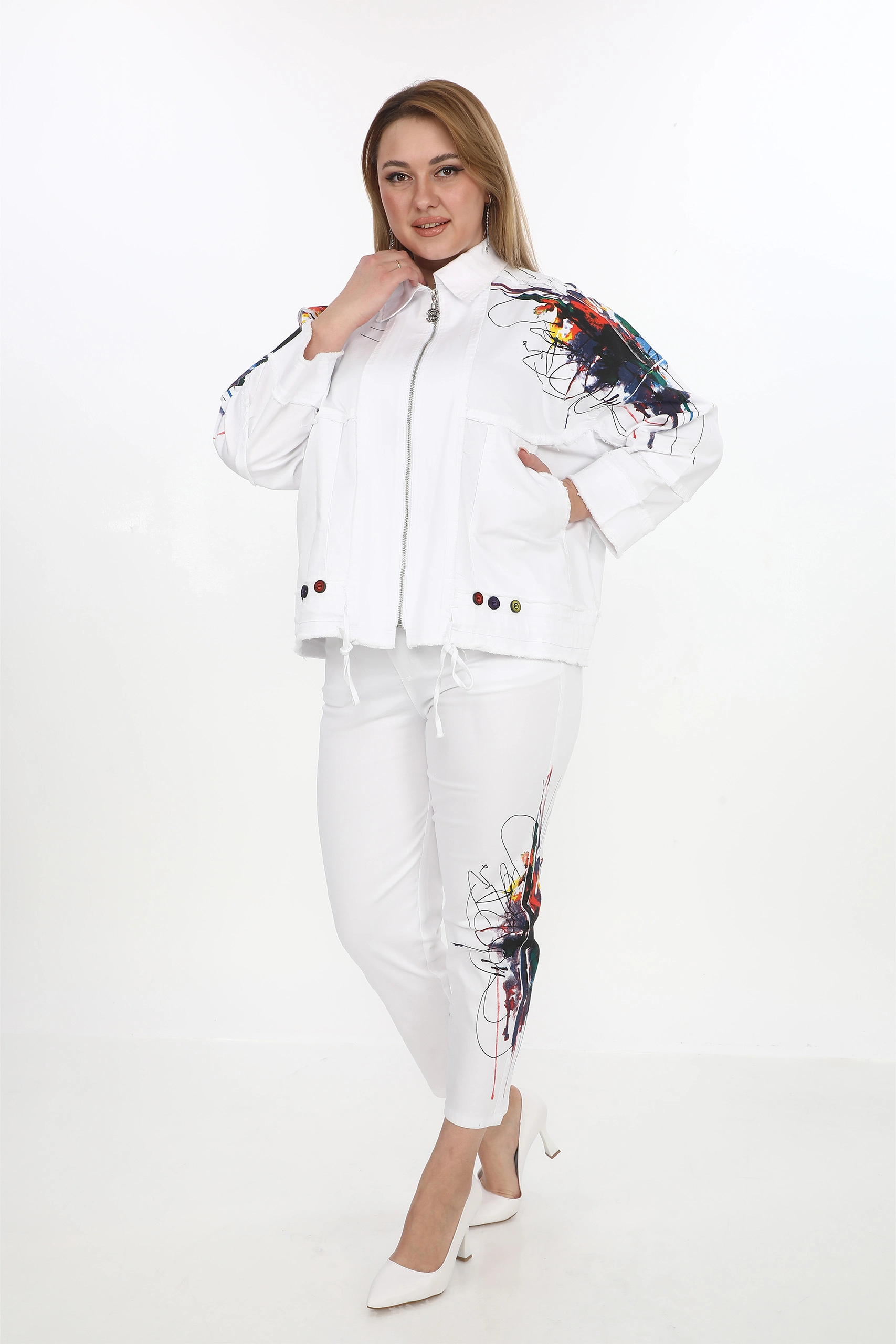 Baskılı Büyük Beden Kot Takım